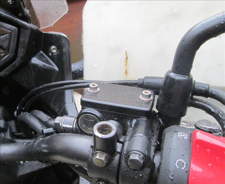 So I want to refresh the brake fluid in the CB500X. I simply need to remove the master cylinder reservoir cover. One screw turns but of course the other one was fitted by a machine with the torque set to 8,000,000 ft/lbs. This ain't my first rodeo. Dremel out. Sharp knock-through screwdriver out. Small hammer out. Grind, whack, chisel and bash until the screw comes out. Of course it's ruined now.